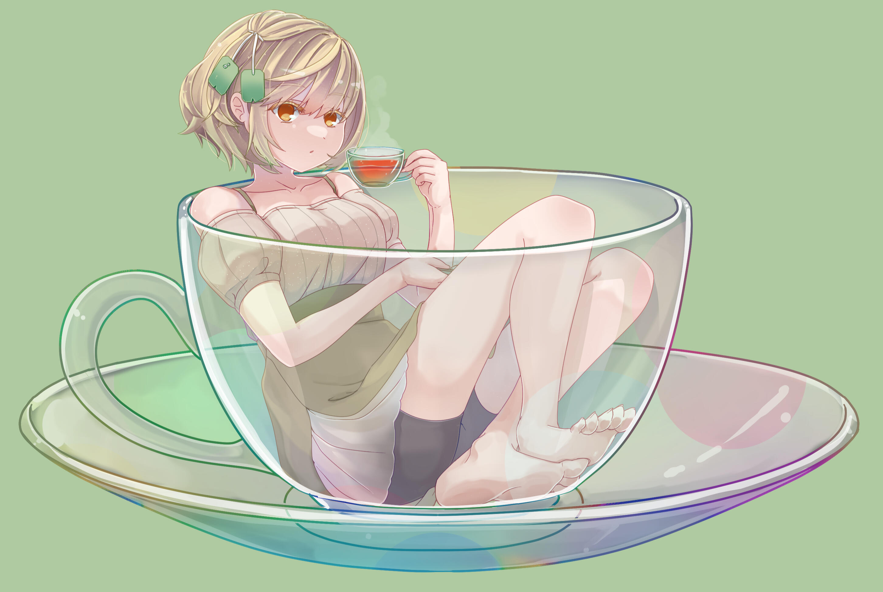 Tea is an original character I didn't intend to create. I tried to design her design her based on my favorite drink, jasmine tea. She is the character you see on the left. I draw her every year to see how much I changed throughout the year.There was originally two characters: one that represents who I am outside (Petit), and one that I wish I could be (Tea). While they appear as different people, Petit and Tea are actually a same person whose personality gets divided. Even though Tea is more like a "sub-personality," her persona is too strong that she becomes a new entity.Nowadays I don't draw Petit anymore and just use Tea as my persona.